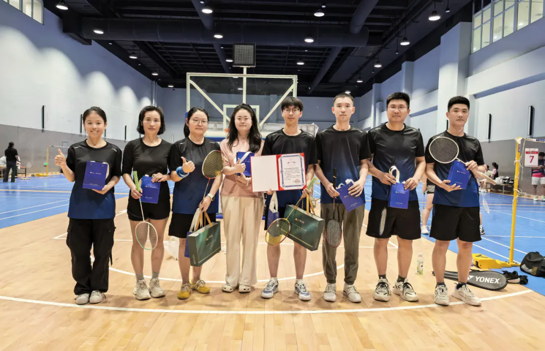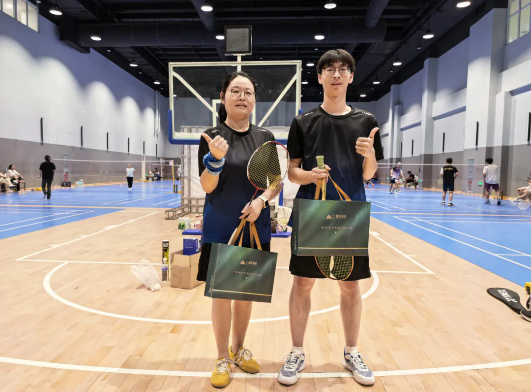 在9月26日傍晚于动投壹中心中联运动公园举行的2025海大生物与天安科创城羽毛球友谊赛中,青岛海大生物集团参赛团队发挥出色,凭借精湛的球技与默契的团队协作,勇夺赛事冠军。队员纪文斐、董倩萍分别获得比赛男、女最高分。